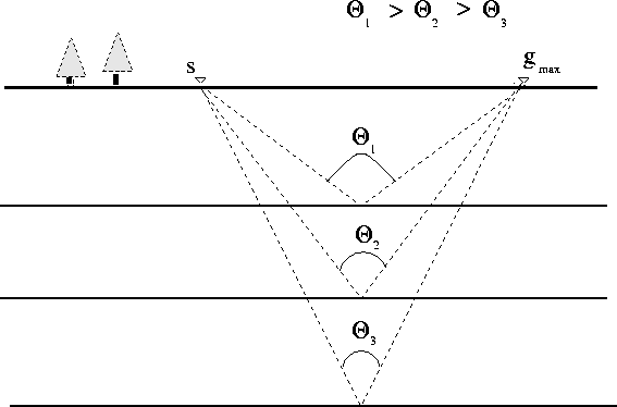 that the vertical resolution decreases as the reflector depth increases (Figure 7).
