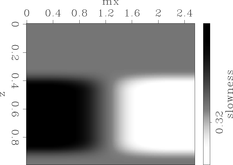 The background velocity (Figure 2) is characterized by strong lateral variation to provide a somewhat complex background wavefield.