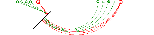 Figure 8 Wavefronts as in Figure 6. The two highlighted wavefronts (time t+dt) intersect at the edges of the reflector, and they contribute to the image at the intersecting points. | ![]() |