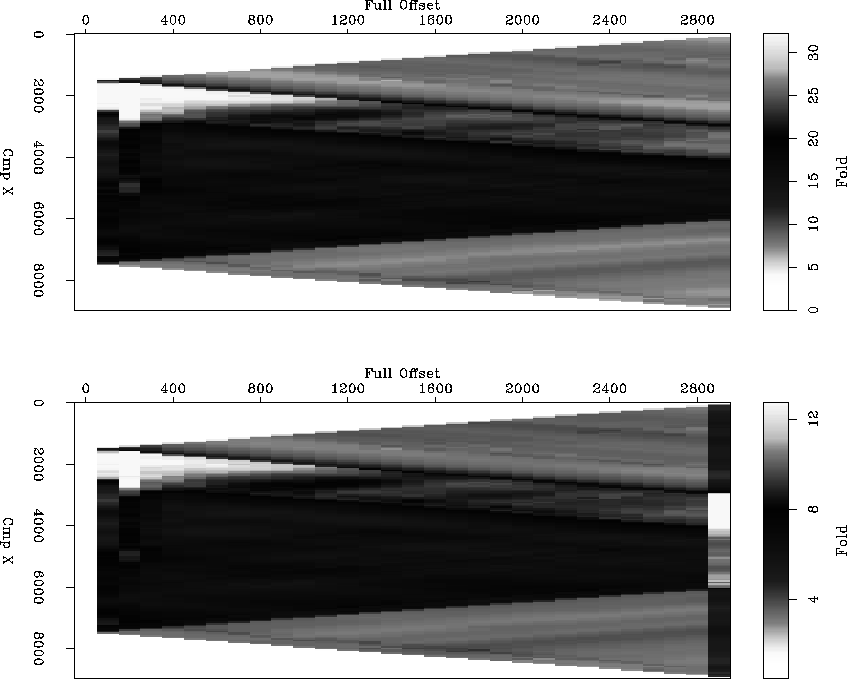 for one crossline of the data set in study. Observe the holes