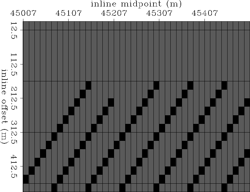 illustrates the sparse sampling of the inline offset axis.