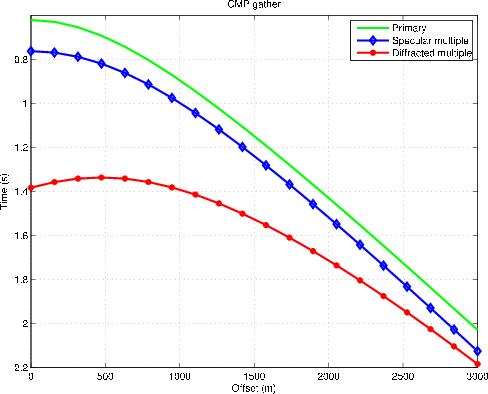 diffracted multiples very different in Common-midpoint (CMP) gathers.