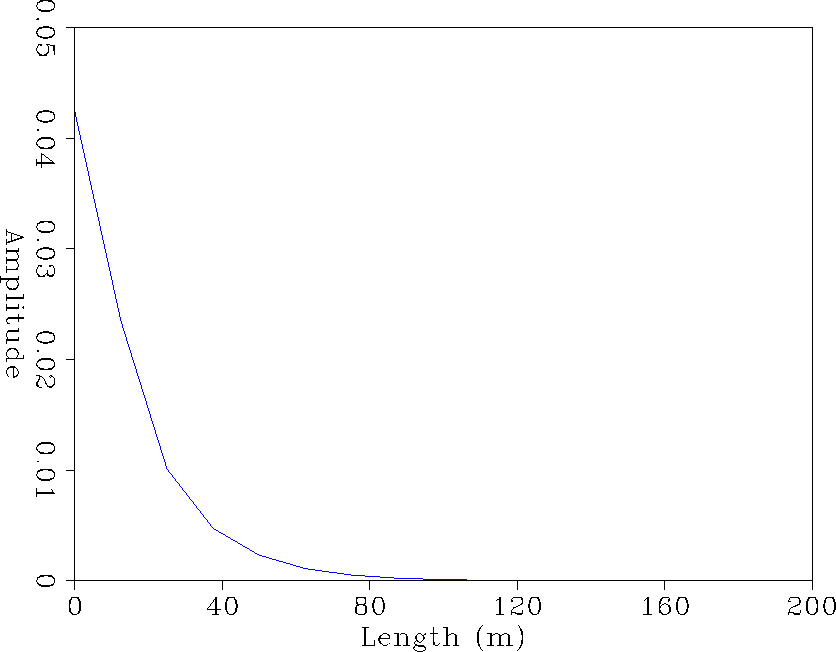 Figure 9 The magnitude of the tapered extrapolator in space domain. The filter