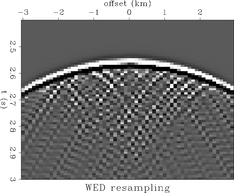 In Figure wedresamp the synthetic is resampled by upward continuing