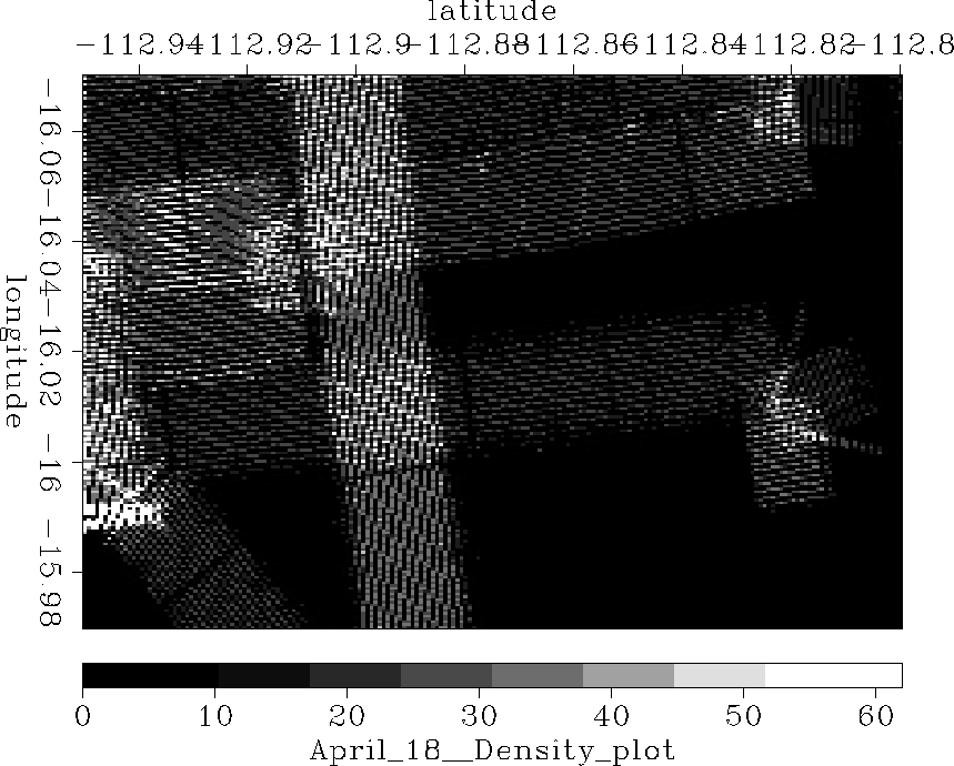 Figure 2 Closeup of SeaBeam density plot to show acquisition, prepared by Hector Urdaneta. | ![]() |