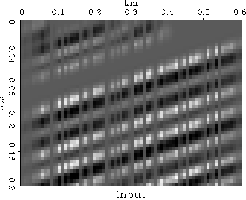 Figure 1 Randomly scaled input. Apparent missing traces are actually scaled by a small number. | ![]() |