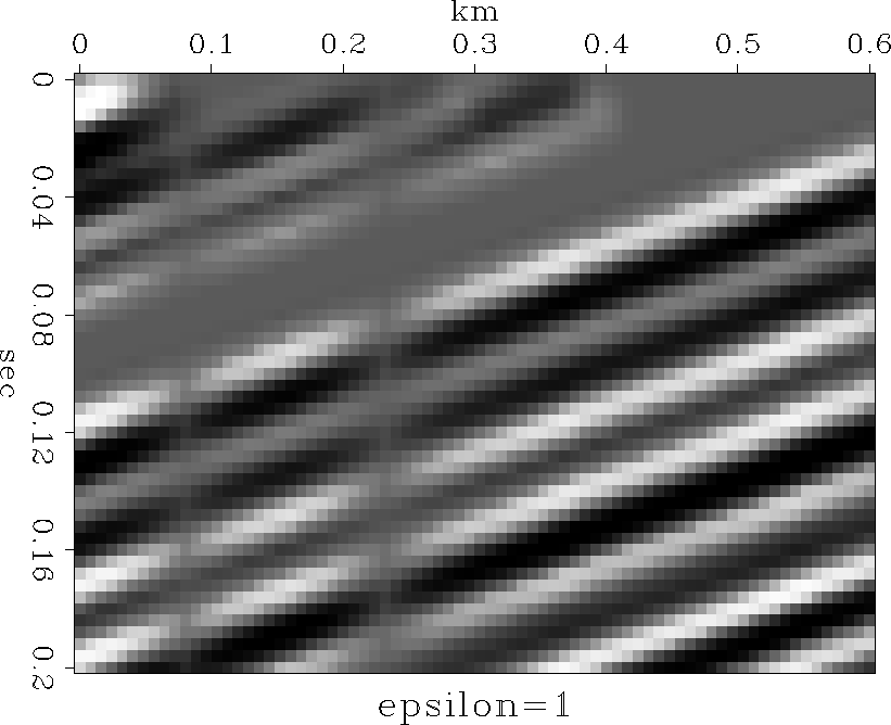 Typically, traces are scaled to have equal energies or equal mean absolute values. In situations such as those above this is not a perfect solution. In the case of noisebursts or machinery, reflection events may be given variable amplitudes depending on the amount of noise in individual traces when they should be constant along many traces. Or where events have extinguished, the resulting drop in initial trace power will result in noise being scaled up. Claerbout suggests that using a prediction error filter to destroy plane waves is perhaps a better way to estimate scales. In other words, scale traces based on the amplitudes along events rather than by total trace power or amplitude. When the proper filter is known, power in the output from locally planar data is minimized when the magnitude along events of a given dip is easily predictable, i.e. constant or smoothly increasing or decreasing.