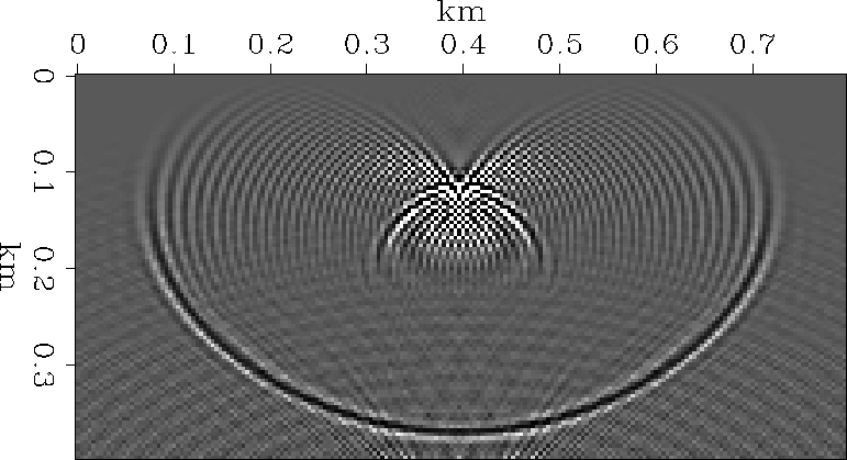The Kolmogoroff factorization is not exact because the filters are factored in the frequency domain, assuming circular boundary conditions; while the polynomial division is performed in the time domain with transient boundary conditions. As a result the filters must be padded in the time-domain before spectral factorization. Padding does not significantly effect the overall cost of the migration, as the computational expense lies in the polynomial division, not in the factorization.