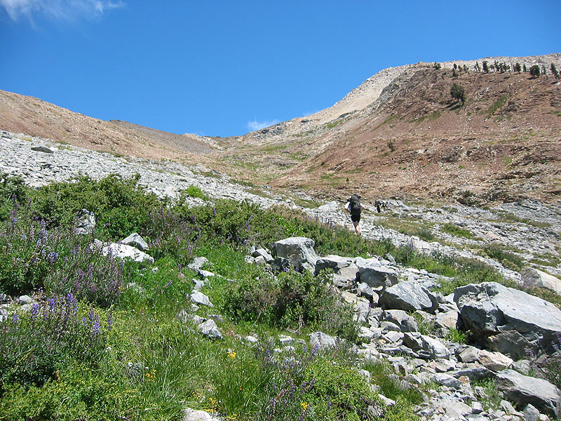 Climbers ascending the well-behaved, direct path from Mineral King to Glacier Pass.