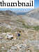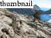 By this time, I had not yet forgotten my "premonition". So as I ascended the aforementioned slabs, maybe this is why I backed down from an exposed spot as Tim climbed about 40 feet above me. It happened fast, but I saw Tim's foot dislodge a 20-pound rock. It slid, then bounced once, and I could see that it was going to be a close call. I just ducked my head and closed my eyes...WHACK! Luckily the thing has not yet gone into a more ballistic trajectory, because it barely stunned me. But without a helmet, I might have a broken nose, lacerations, or worse. Phew.