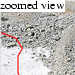 The route is fairly easy to follow. Other than local routefinding decisions (i.e., this crack or that slab?), there are only a couple perplexing decisions. One is where the West Ridge access gully joins the Southwest Face (stay right). The other occurs at around 13000', where you're faced with a 30-foot pitch of very steep climbing with death fall written all over it. In rock shoes, without a pack, and without the need to downclimb...maybe. But in this case, Tim found a nifty, if awkward, alternate path to the left, on the exposed spur of the gully. From here, it's another few hundred feet of sustained scrambling to the summit, an airy perch, but roomy enough for 3.