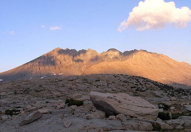 Split Mountain at sunset from camp in Upper Basin.