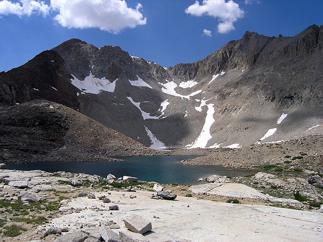 Mount Ickes and tarn on JMT toward Pinchot Pass.