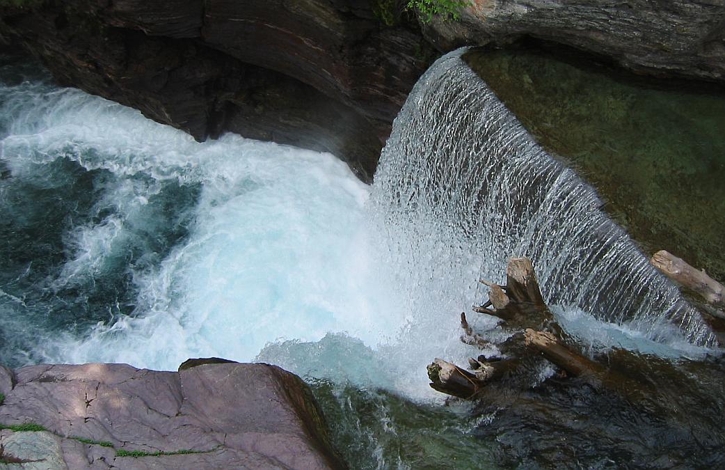 Frozen at a fast shutter speed, the upper cascade of St. Mary Falls creates a pleasing abstract view.