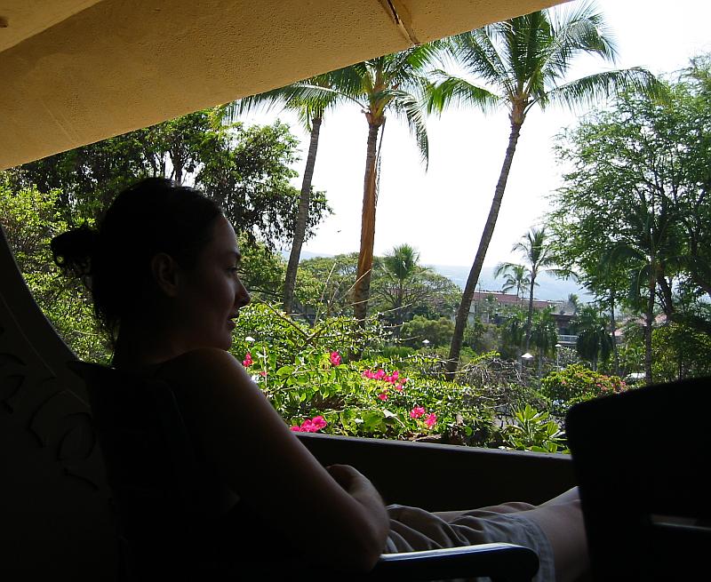 Kim and the view from our balcony at the Royal Kona Resort.