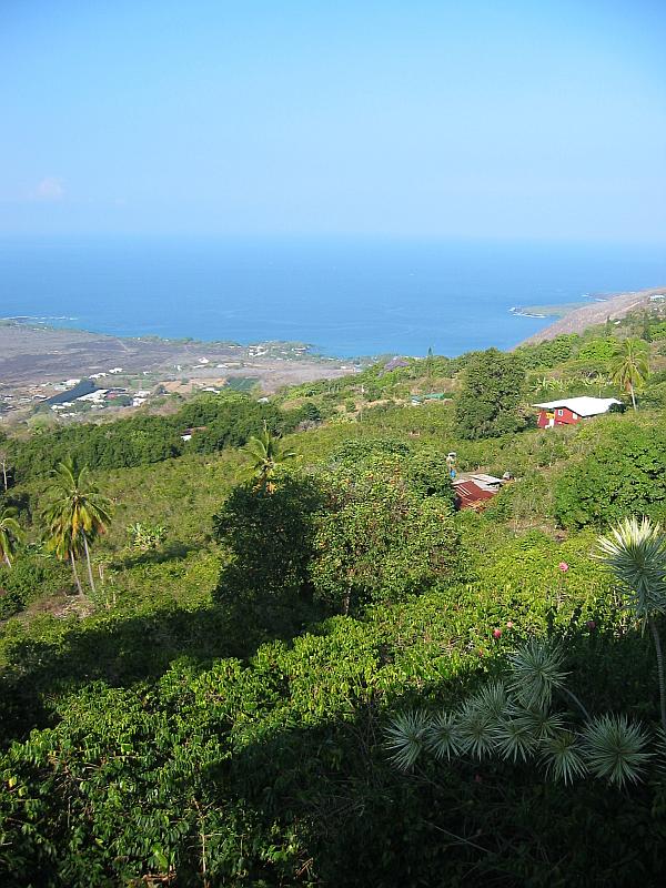 The Kona Coffee Shack (in Honaunau or Captain Cook, I forget) has pretty good breakfast fare with an unbelievable view.