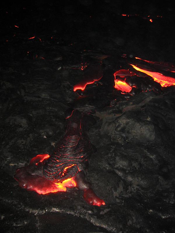 Lava flow close-up with flash.