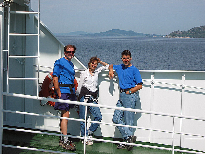 Dimitri, Diana, and Paul on the ferry ride from Lauvik to Oanes.