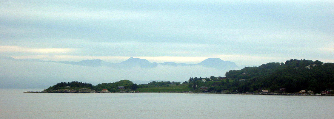 | One of the many islands in the bay between Tau and Stavanger. Kristin Svines Aksnes said, "The island..I believe is Heng, the first one after leaving Tau...The background of Heng island is in your picture a bit cloudy but you can se a wide gap like a valley which sailors for centuries have navigated by - you can see it far out to sea and it is called “Bjørheimskjeften...some have told me that the name once meant 'the mouth of the bear'." |