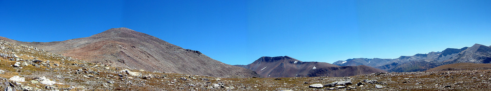 Mount Dana, Mount Gibbs, Koip and Kuna Peaks, and the Kuna Crest from the west slopes of Mount Dana.