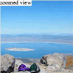 After an hour or so of elapsed time, we crest a small ridge and finally re-glimspe Mount Dana's summit. We move uphill, across the grassy slopes of a high cirque, amazed at how enjoyable this cross-country route has been. Soon we are plying our way up the well-beaten use trail toward the summit, meeting a few parties on the way down. Although the summit looks like a pile of slag from a distance, it is actually more granitic than metasedmentary (a la Gibbs, Koip, Kuna, et al.), so the talus tends to be a bit more stable. Within 2 hours and 15 minutes of starting, we're on the summit. We meet an older (mid 40's) gentleman on the summit and chat for a while. Soon a younger dude in dreadlocks, panting heavily, joins us. We eat a lunch on the summit and bask in windless conditions for 30 minutes. Great views all around, though I admittedly am disappointed by heavily smoky/smoggy conditions to the west. Still, views to Mono Lake are unparalleled compared to what I've seen (Bloody Canyon, Koip Peak, Dunderberg Peak), and the Dana Plateau looks really neat.