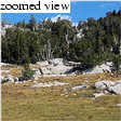 We found a good campsite with a nice view of Rafferty Creek Valley near Fletcher Lake by 10:30, for a respectable 2h45m time over an 8-mile route with a mere 1500 feet of elevation gain. Kim relaxed while I set up the tent, and we soon at lunch in preparation for a yet-to-be-determined dayhike. We were feeling kind of lethargic after lunch, so a climb of Vogelsang Peak seemed out. Instead, I suggested that we hike northwest to explore the region near Evelyn Lake. Peak 11500' looked well-positioned to get a birds-eye view of the area, particularly of the forbidding Ireland Lake, which I had always wanted to see.
