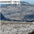 We started slowly up the trail to Evelyn Lake, and left the trail at a crest, heading southeast, toward Peak 11500'. I remember stopping a couple times, wanting just to give up. This was nothing that a Balance Bar couldn't solve! After getting a chocolate boost, I was energetic again, and soon we found ourselves at the saddle south of Peak 11500'. From there, the peak is merely 200 feet higher, so we could hardly pass at the option of climbing it. Views down to Ireland Lake and of the high peaks to the east were stunning.