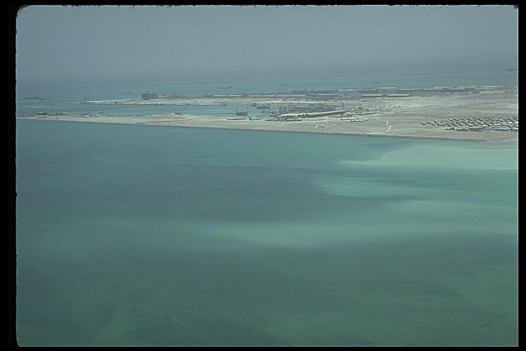 Flying north up the coast of the gulf over ARAMCO facilities. (Probably around Ras Tanura, Aramco facility)