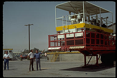 GSI Service Vehicles (L-R GSI VP Walt Thomsen, Local Mgr Jim Richardson, Pres Dolan McDaniel, examining a generator trailer)