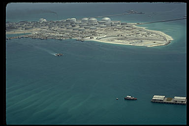 Flying north up the coast of the gulf over ARAMCO facilities. (Probably around Ras Tanura, Aramco facility)