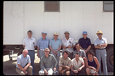 Camp with GSI personnel plus Dallas Visitors -- 10 mile W of Abu Hadriyah. Cecil is second from the left in the back row. (visitors and GSI camp staff)
