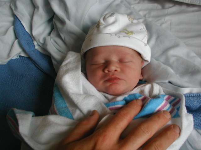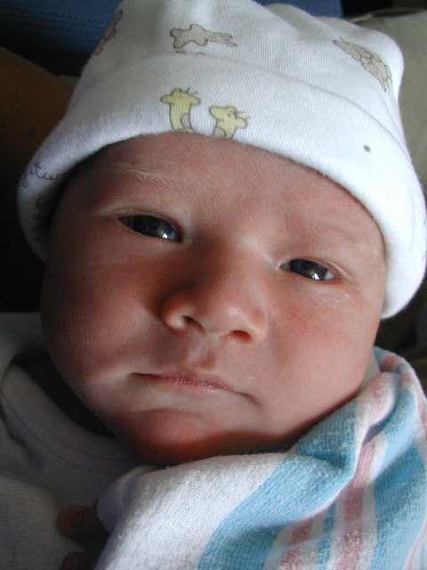 He was 7 lbs, 14 oz., and looks more than a little like his dad. (We're afraid that his prompt arrival right on the due date might suggest at least some personality resemblance to his mom.)