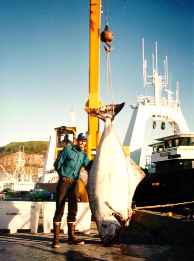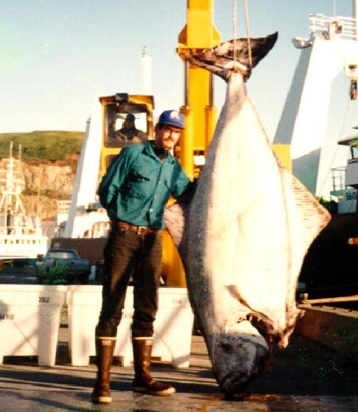 They later caught this 420 pound halibut. Go enjoy his Alaska diary."We knelt on the stern, facing the sea, in between the spool and the stern. We each had by our side a tub of 250 pieces of bait with ganyons attached.