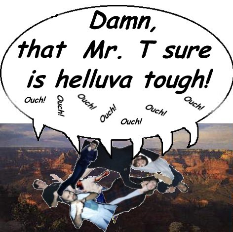 With one gigantic swing, Mr. T hurled the entire P-Team halfway around the world!