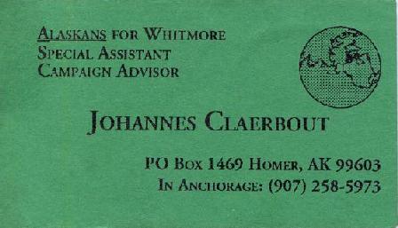 Off on the campaign trail, I received regular and often hilarious messages and updates from Jos, who took on the enormous effort with gusto. He never missed an opportunity to put in a positive word, stayed upbeat under the load, and got along well with everybody. As the summer progressed, our statewide Coordinator Betty Wood (who had been equally impressed by Jos's abilities), called to say a family emergency would require her return to New York. She had already spoken to Jos, and the two had decided he would take over in the Anchorage office through the duration of the campaign.