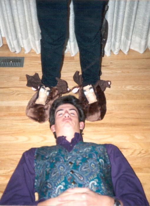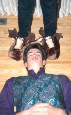 Another of my cousins died and Jeremy knew him and wanted to come to the funeral. It was a first for him to see a "Catholic" open coffin, etc.... We stood in the back (we came a bit late) and he put his arm around me -- I thought because he was comforting me because I was crying, etc. The next thing that I knew, Jeremy was laying in a heap on top of me. He had passed out. Cindy and I were trying not to make much of a commotion since it was a somber event and all. So I tried with Cindy's help to wriggle out from under the "big guy's weight". We managed to drag him outside in the marble entry and brought him back to consciousness. We then decided it was best to leave. We ended up laughing hysterically all the way home and soon forgot how sad and down we were.