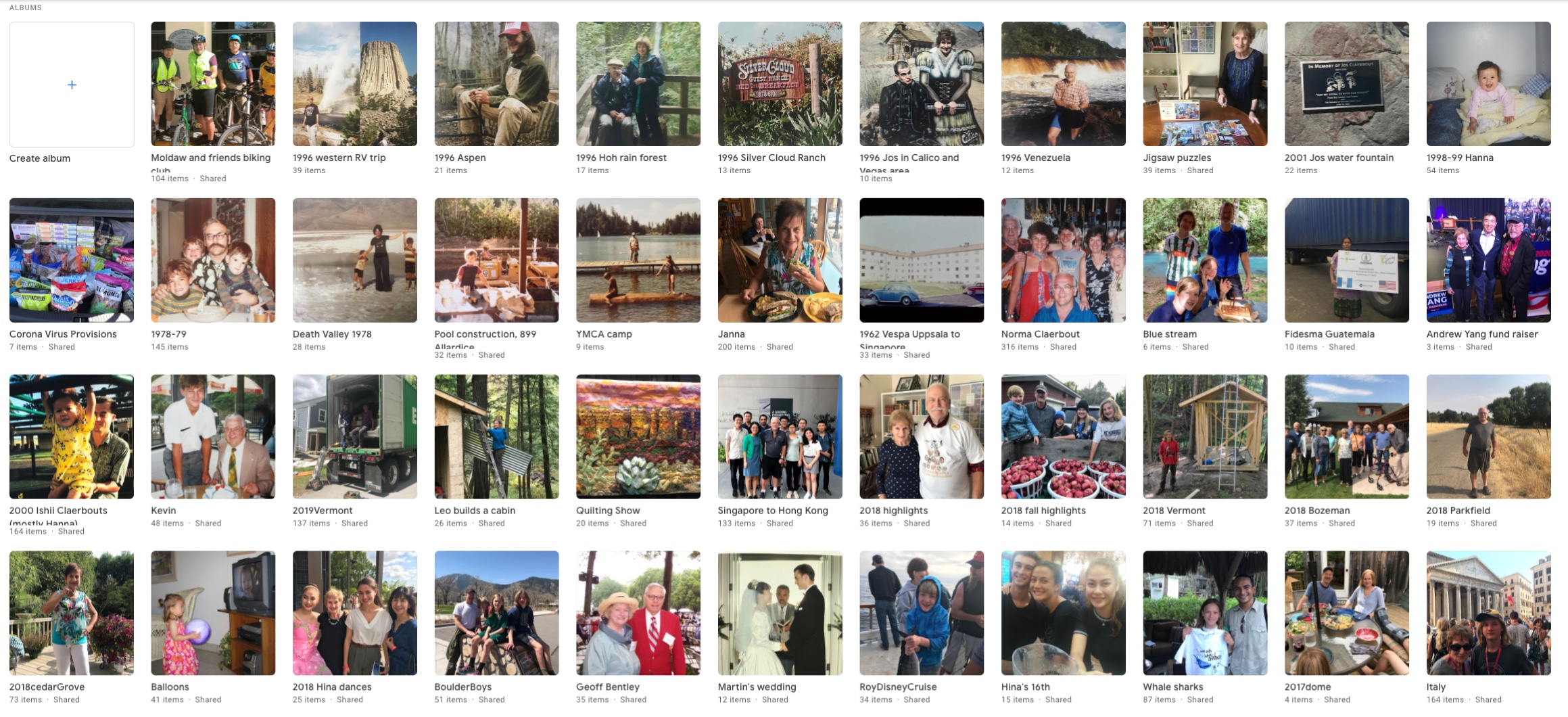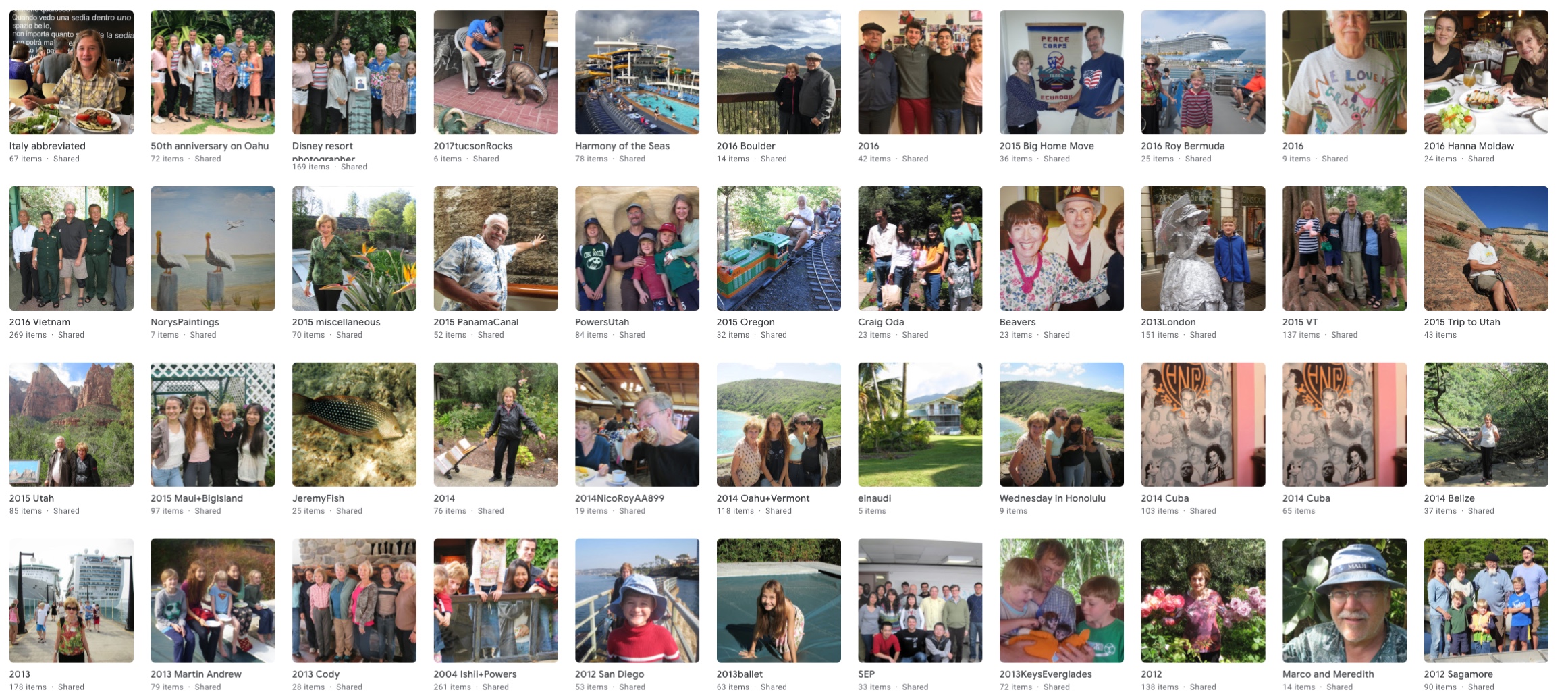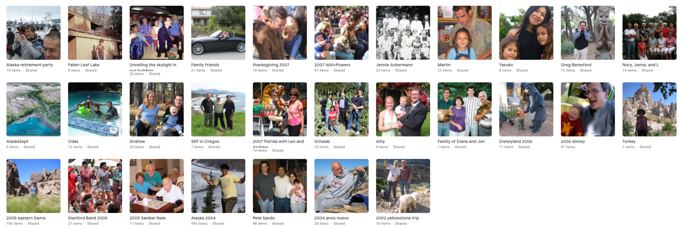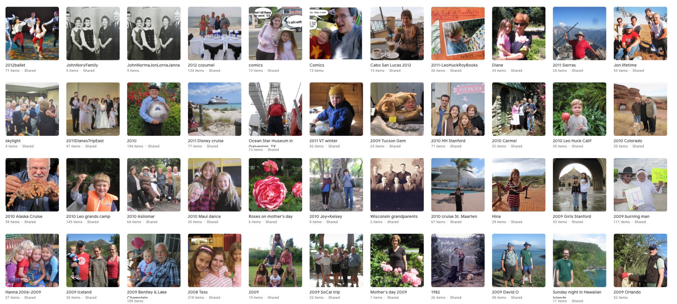 Links to slide shows at Google Photos