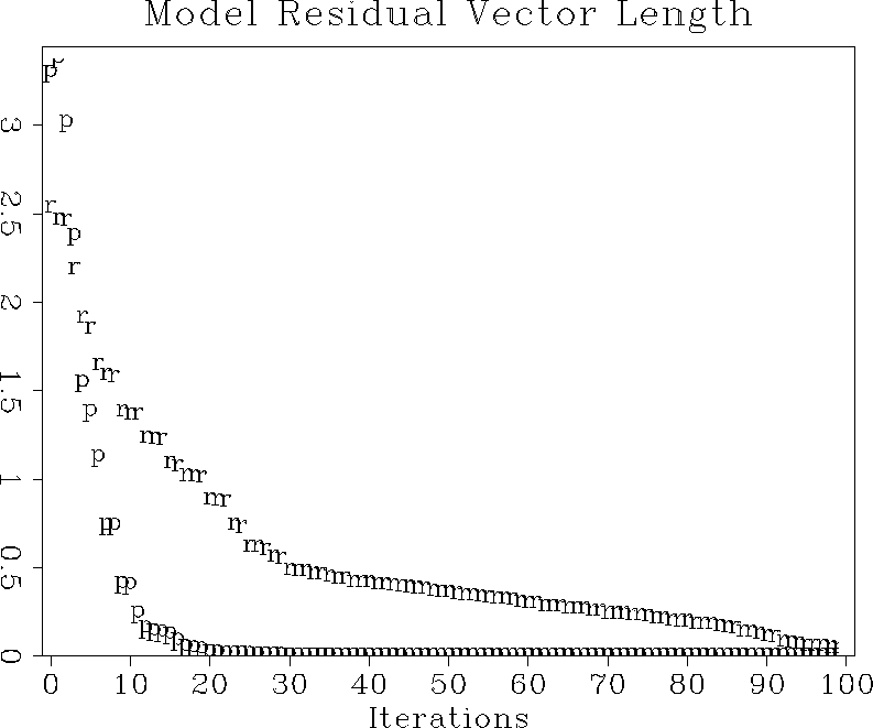 Figure 6 Convergence of the iterative optimization, measured in terms of the model residual. The ``p'' points stand for preconditioning; the ``r'' points, regularization. | ![]() |