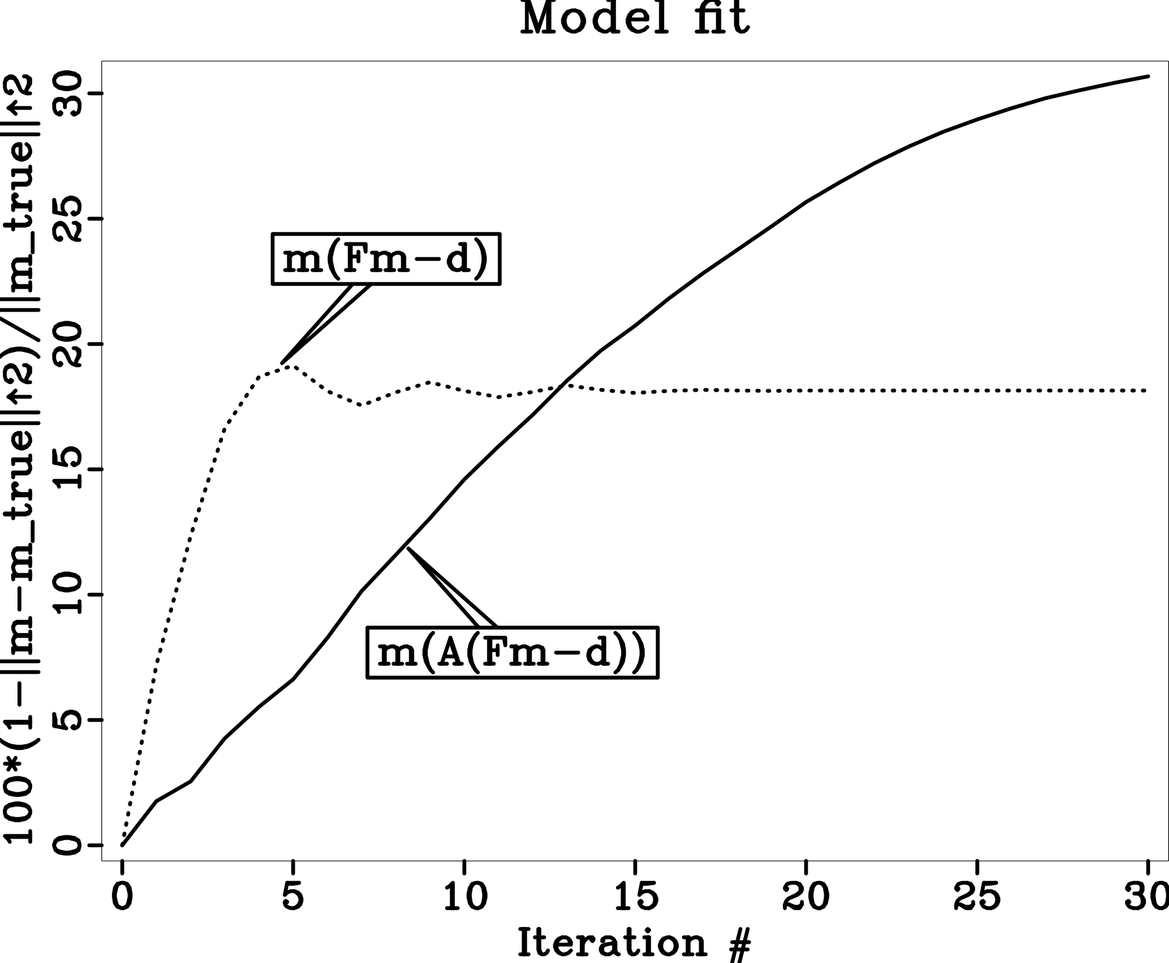 - Marmousi estimated without PEF: L2 norm minimization of r(m) = Fm-d.