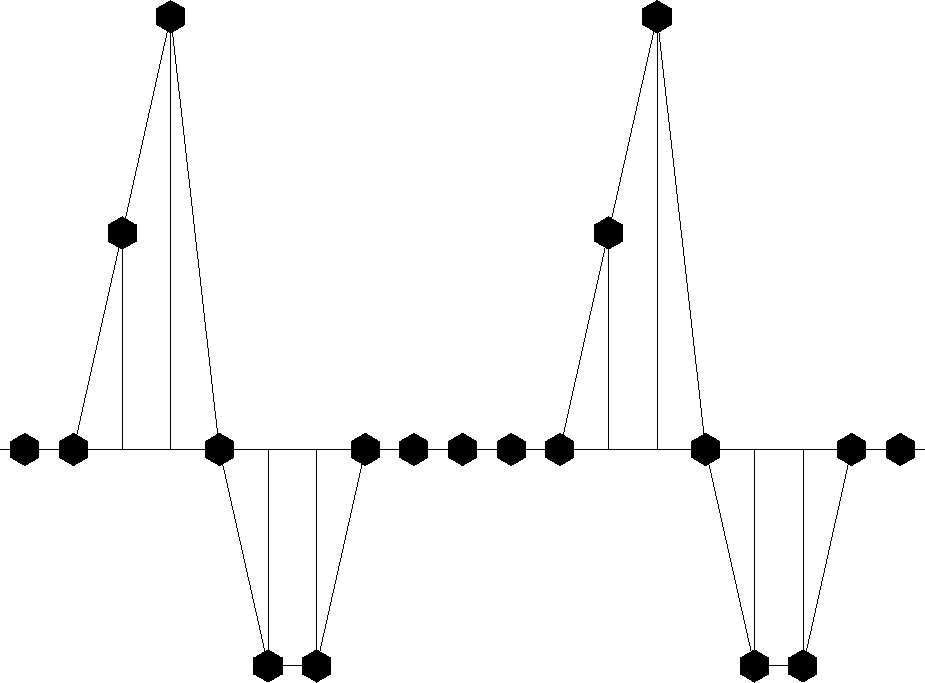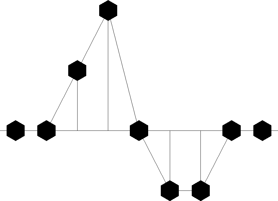 Another value of the delay operator is that it may be used to build up more complicated signals from simpler ones. Suppose bt represents the acoustic pressure function or the seismogram observed after a distant explosion. Then bt is called the ``impulse response.'' If another explosion occurred at t = 10 time units after the first, we would expect the pressure function y(t) depicted in Figure 3. In terms of Z-transforms, this pressure function would be expressed as Y(Z) = B(Z) + Z10 B(Z).
