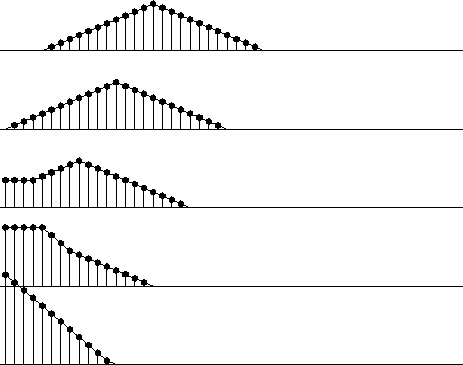 Figure 3 Edge effects when smoothing an impulse with a triangle function. Inputs are spikes at various distances from the edge. | ![]() |
