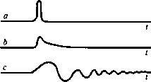 Figure 17 (a) A pulse. (b) A pulse slightly dispersed as by the physical dissipation of high frequencies. (c) A pulse with a substantial amount of frequency dispersion, such as could result from careless data processing. | ![]() |