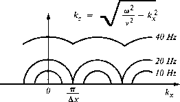 Figure 19 The effective dispersion relation of the wave equation when the horizontal axis is sampled. Frequencies are given for typical zero-offset migration. | ![]() |