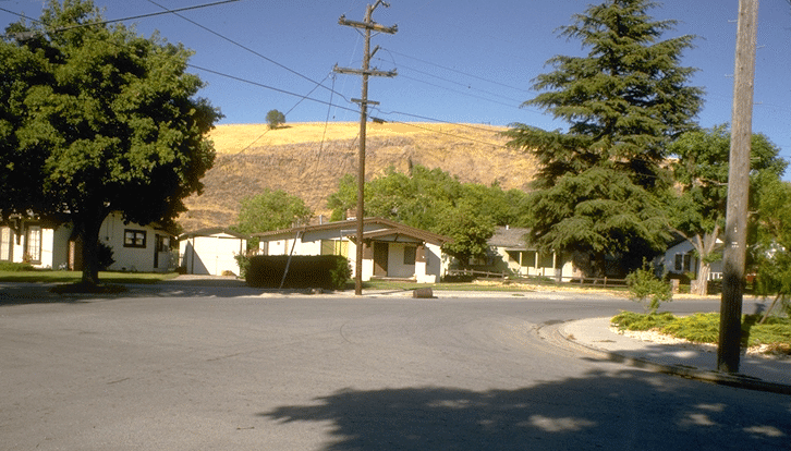 Photo A1, on the left, shows the West side of Vista Park Hill. This hill is a ``push-up ridge'': the Calaveras fault splits into two strands here and a wedge of land caught between has been forced up, creating this rather steep-sided long thin hill.