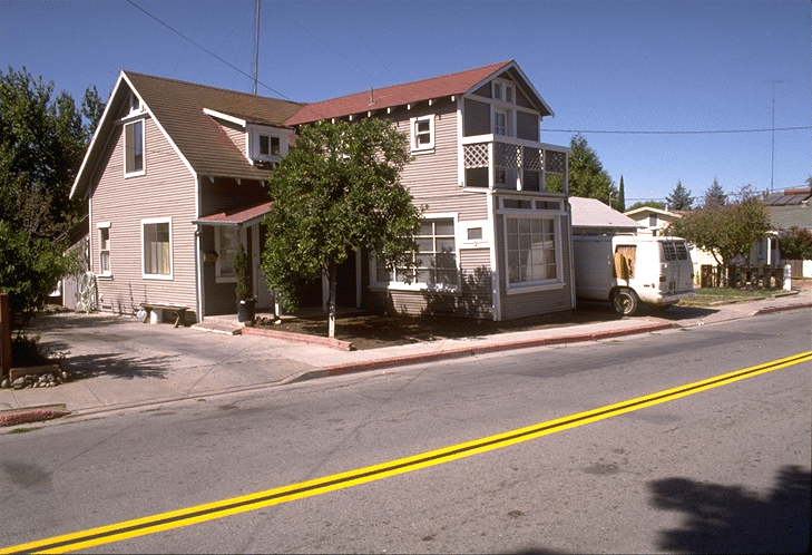 If you are having trouble finding the bend in the curb I mean, here is an enlargement taken from the 1992 photo above to guide you. The bend in the curb caused by the fault is in the precise center of this photo.
