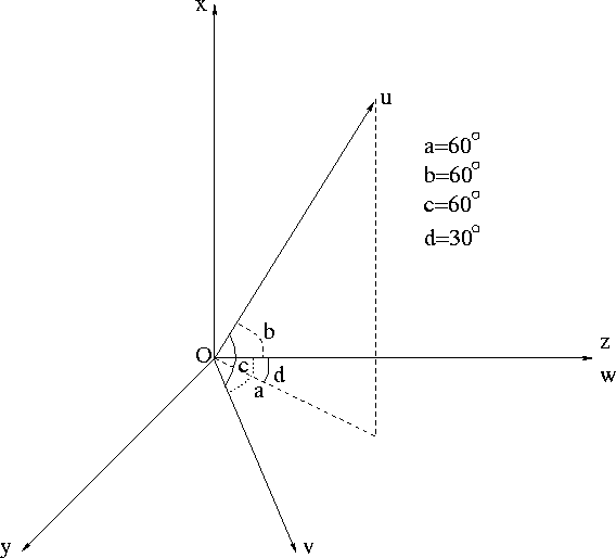 Figure 1 The tetragonal coordinates used in this paper. It reduces to the trigonal coordinates by omitting axis u. | ![]() |