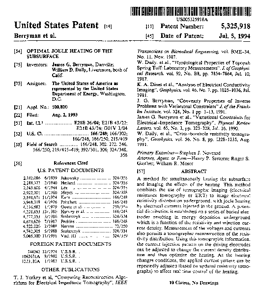 of the subsurface'' to J. G. Berryman and W. D. Daily on July 5, 1994.