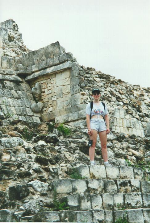 Here I am at the Northeast Colonnade of Chichen Itza. You can see the Longnosed God carved on the wall behind me.