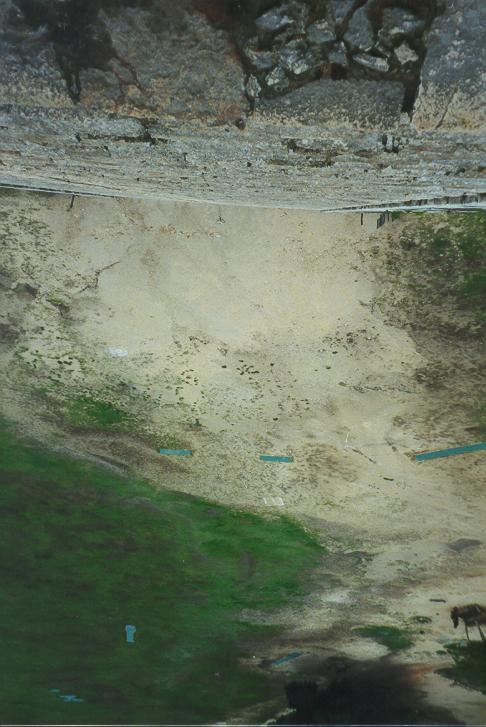 We climbed the big pyramid. It was very big and the steps were very steep. And I'm afraid of heights. This is a picture looking straight down the stairs we climbed.