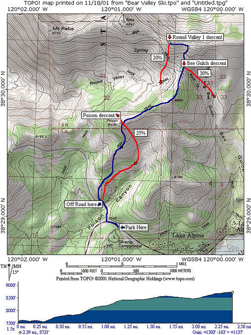 With Brad Artman. We started at the end of Bear Valley resort road (Highway 207),